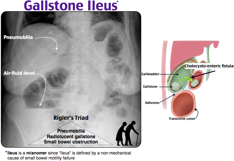 Cholecystoduodenal fistula allows the passage of a stone which impacts in the duodenum and causes gastric outlet obstruction