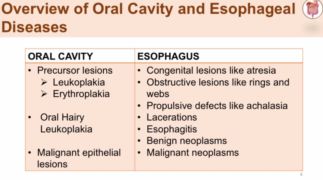 Give an overview of oral cavity and esophageal diseases