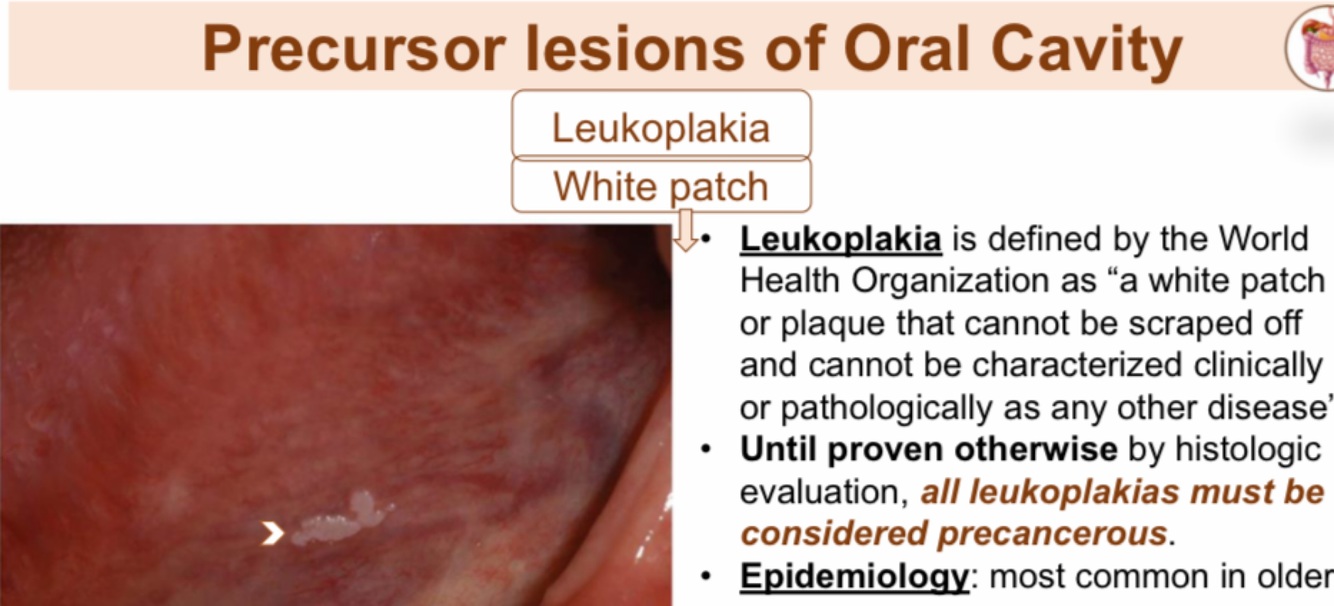 What are the precursors of squamous cell carcinoma or the oral cavity?