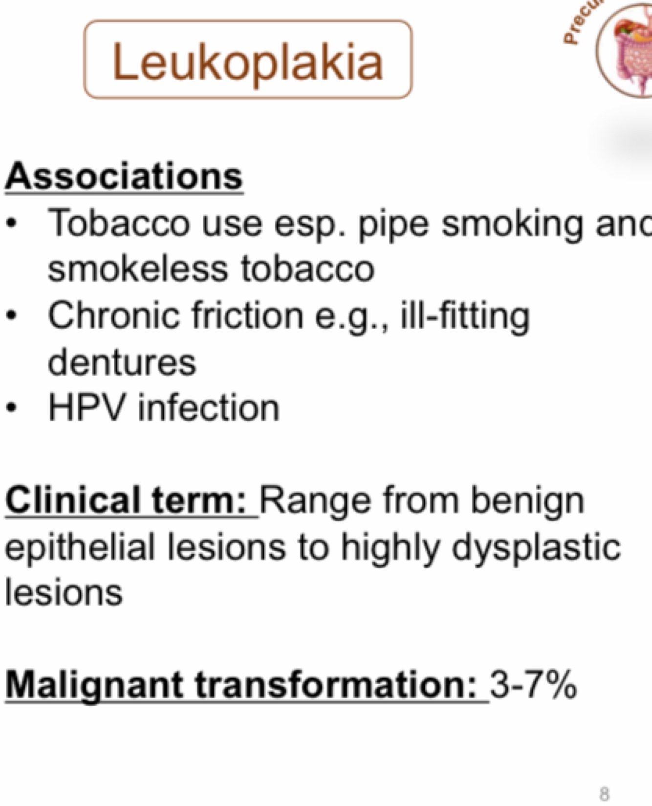 What are the associations of leukoplakia?