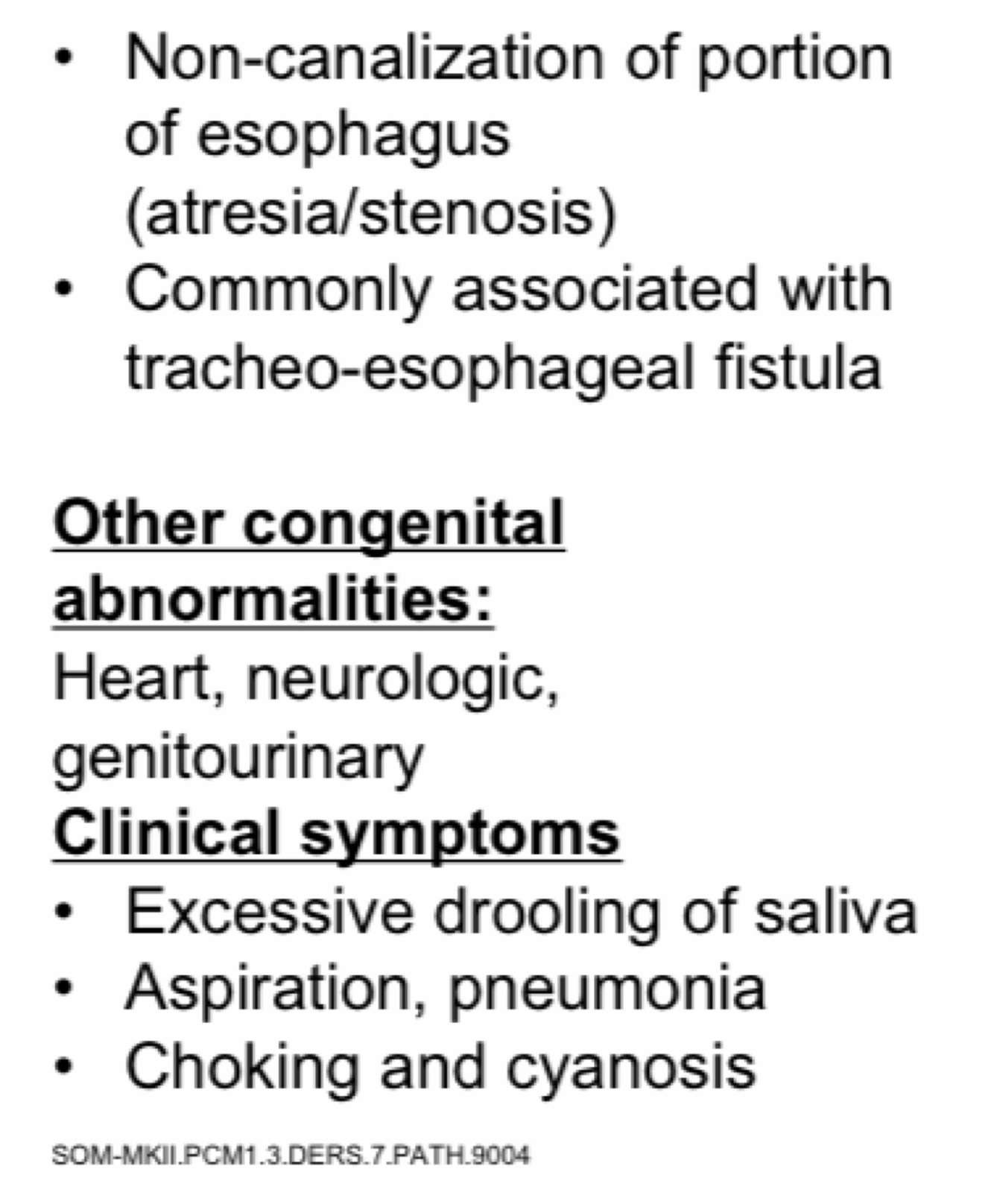 What are symptoms & abnormalities of esophageal atresia ?