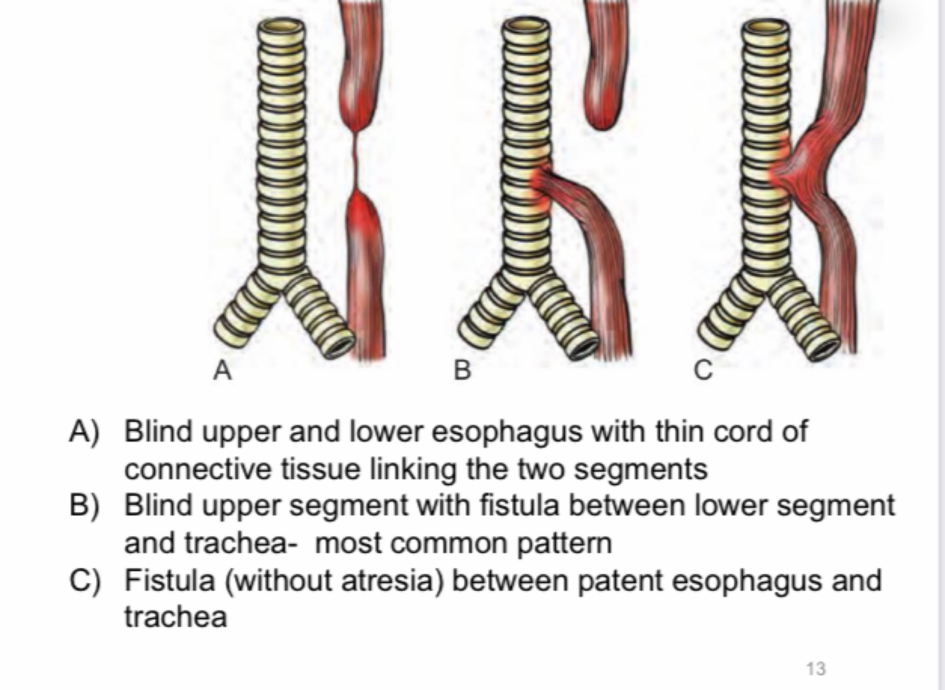 What are the types of esophageal atresia?