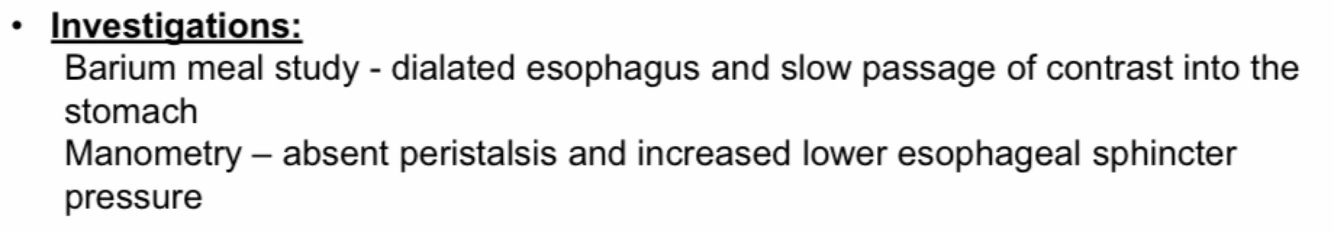 What are the investigations of achalasia?