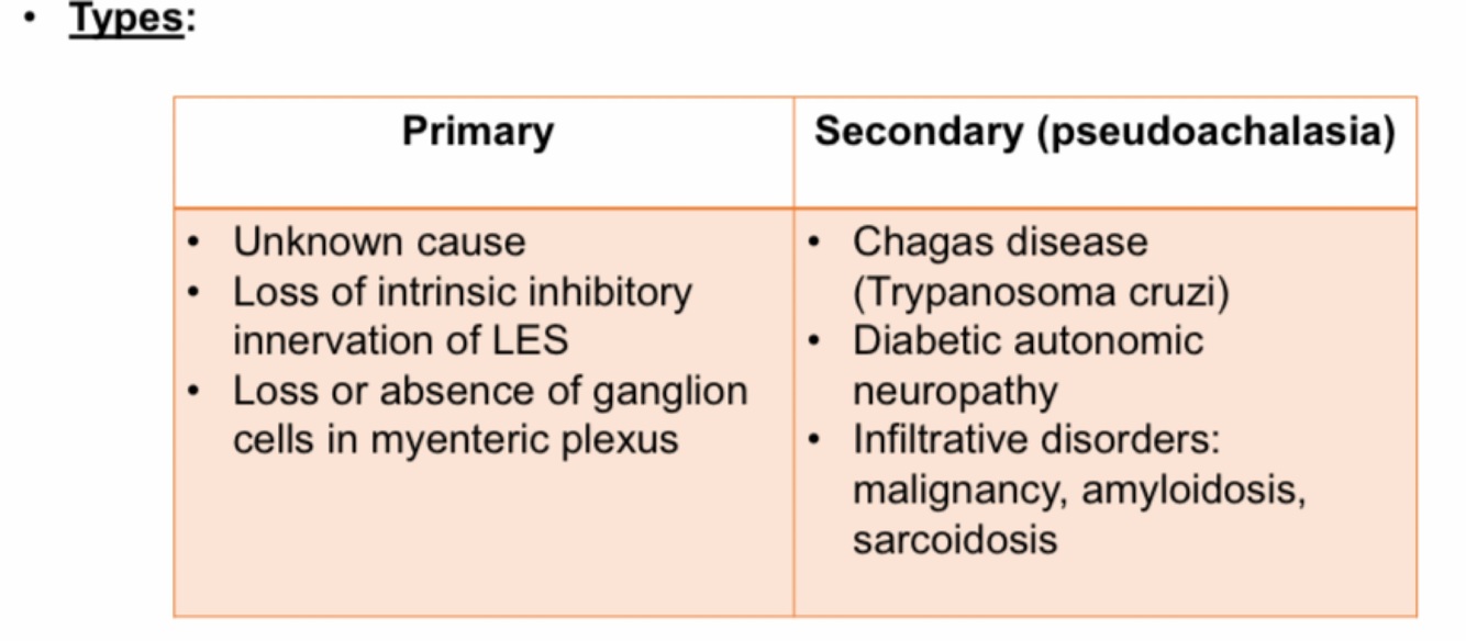 What are the types of achalasia?