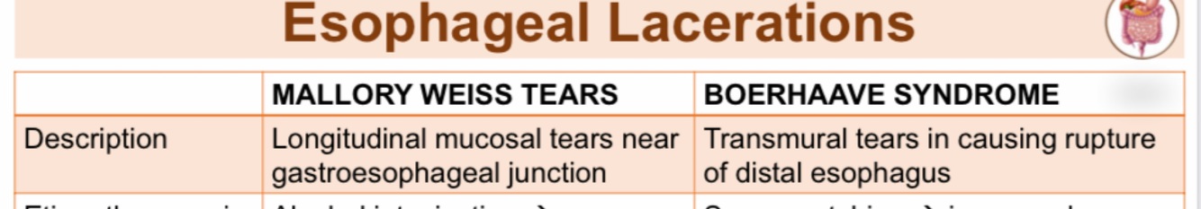 Contrast the desertion of esophageal lacerations