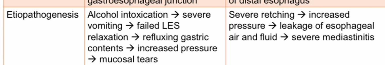 Contrast the etiopathogenesis of esophageal lacerations
