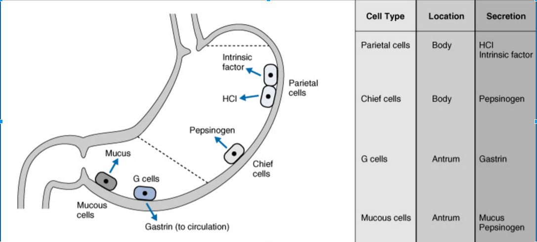 1. Stomach: digestion and break down of food to smaller, absorb-able particles.