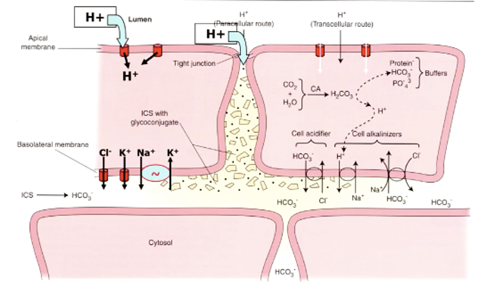 (i.e. if the interestitial pH falls, the basolateral epithelial transporters cause a fall in pH in the cells.)