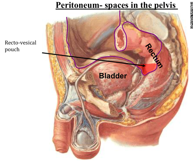 name the space where fluid can collect in males