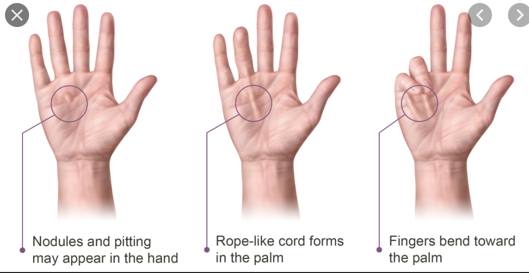 During an abdominal examination we need to examine the hands. Dupuytren’s contractures is something that we may see. What is this and what is a common cause of this in the GIT?