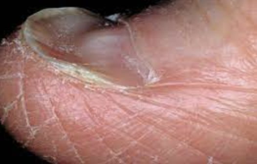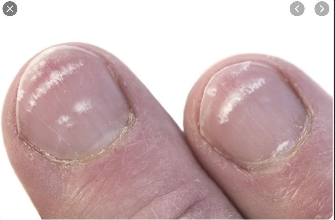 During an abdominal examination we need to examine the hands. Leukonychia is something that we may see. What is this and what is a common cause of this in the GIT?