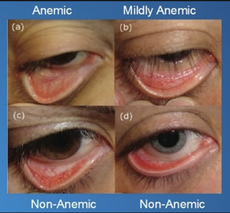 During an abdominal examination we need to examine the eyes. Pallor is something that we may see. What is this and what is a common cause of this in the GIT?