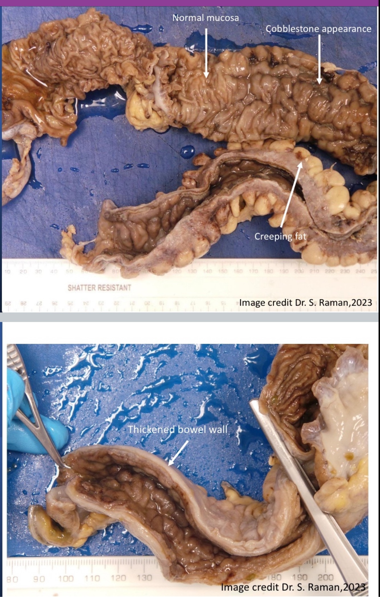 What is the macroscopic appearance of crohns?