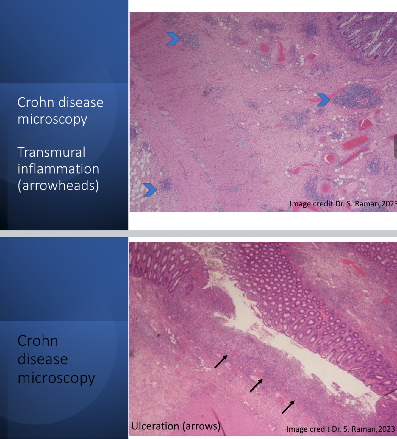 What is the microscopic appearance of crohns?