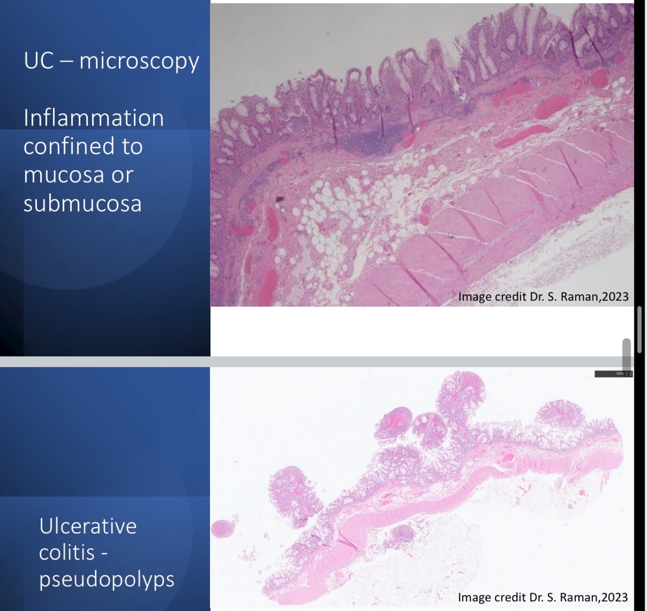 What are the microscopic appearances of UC?