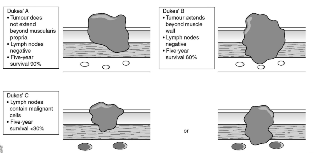 What is the Duke’s staging of colorectal cancer?