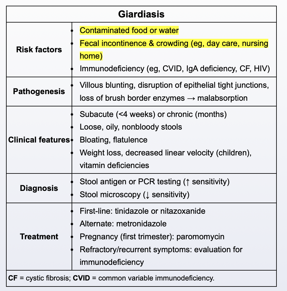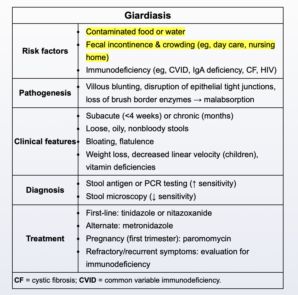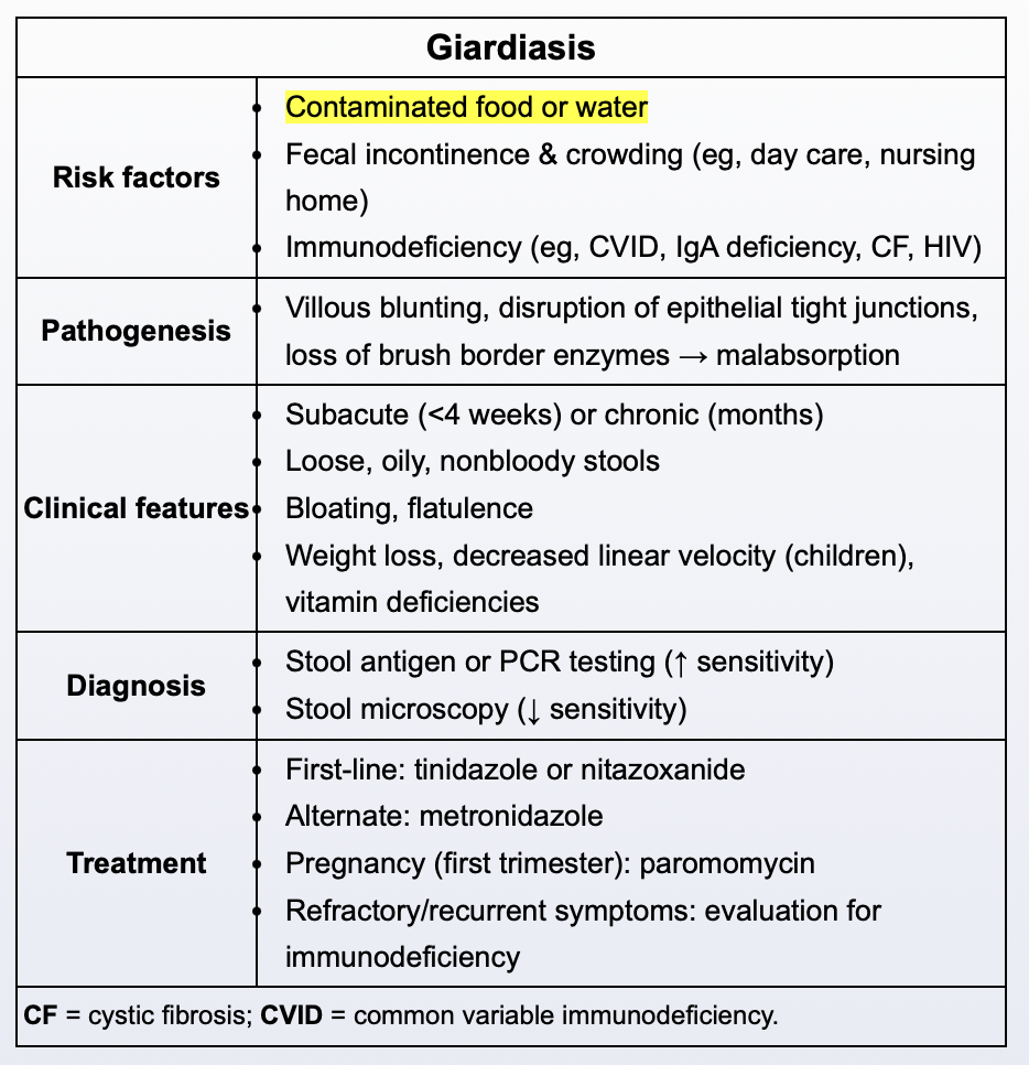 Symptomatic students with positive stool samples should refrain from using recreational water venues for at least 2 weeks. Recreational water venues are another common source of outbreaks, as cysts often resist chlorination and remain viable in water.
