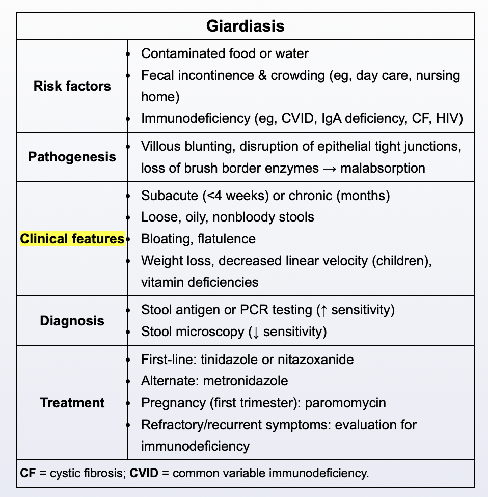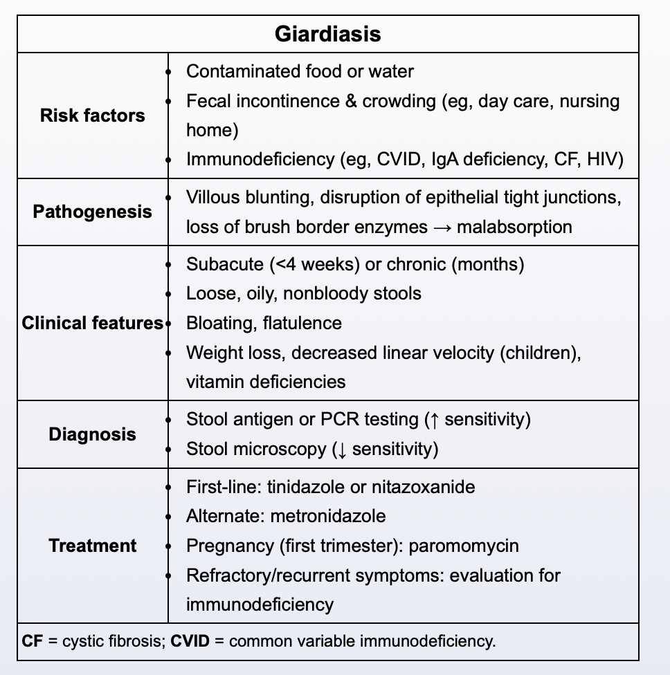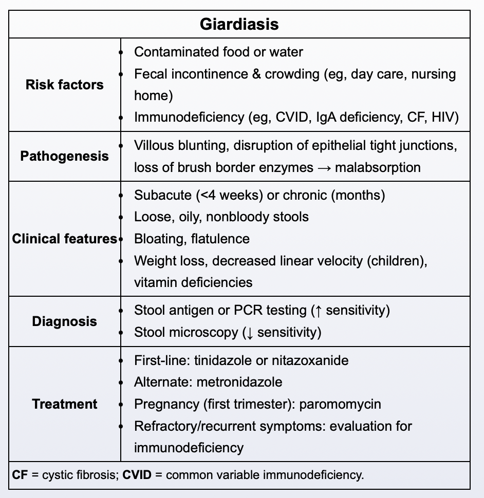 What are the hallmark symptoms of giardiasis?