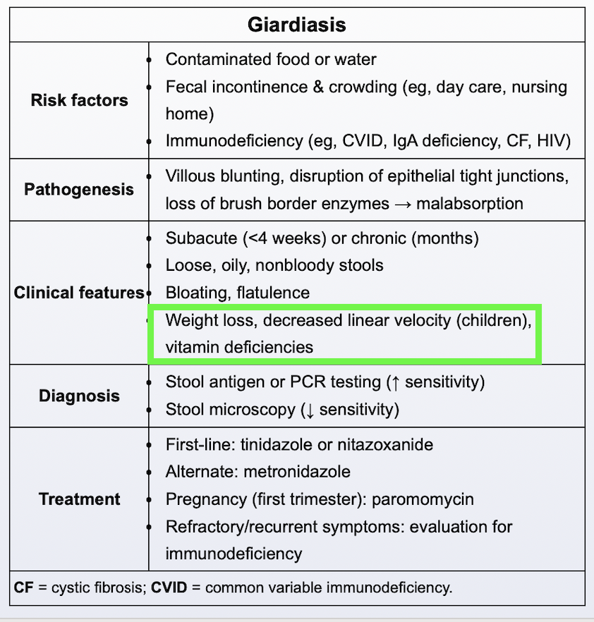 Why does Giardia cause steatorrhea and weight loss?