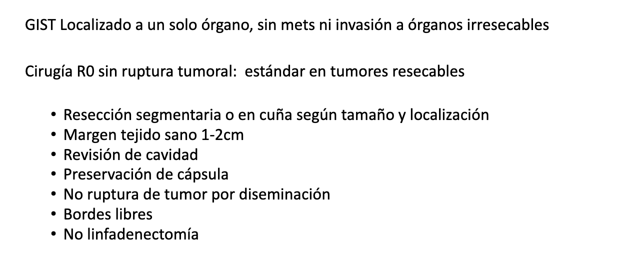 GIST Localizado a un solo órgano, sin mets ni invasión a órganos irresecable