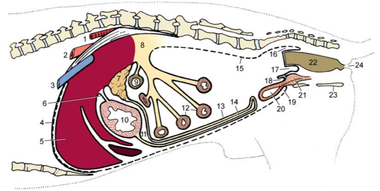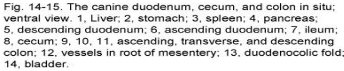 Blood supply –branches of the cranial mesenteric artery