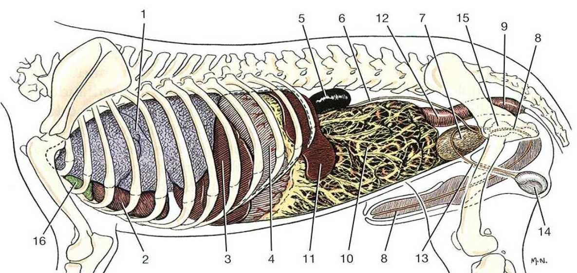 transverse - colon cranial to the root of mesentery (right side)