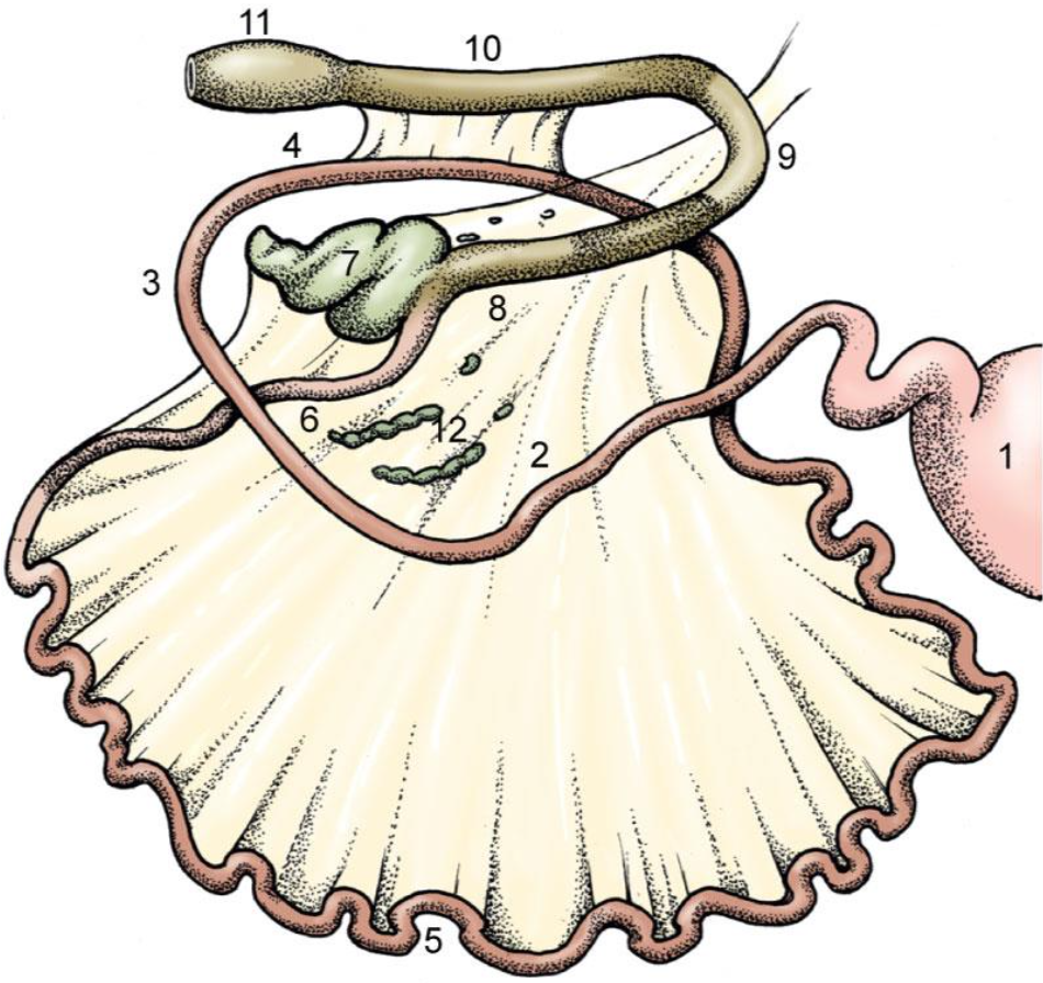 Fan shaped mesentry – mesentric surface & antimesentric