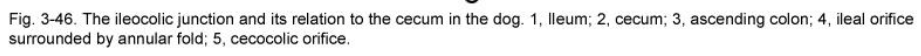Is the caecum small in dogs or horses?
