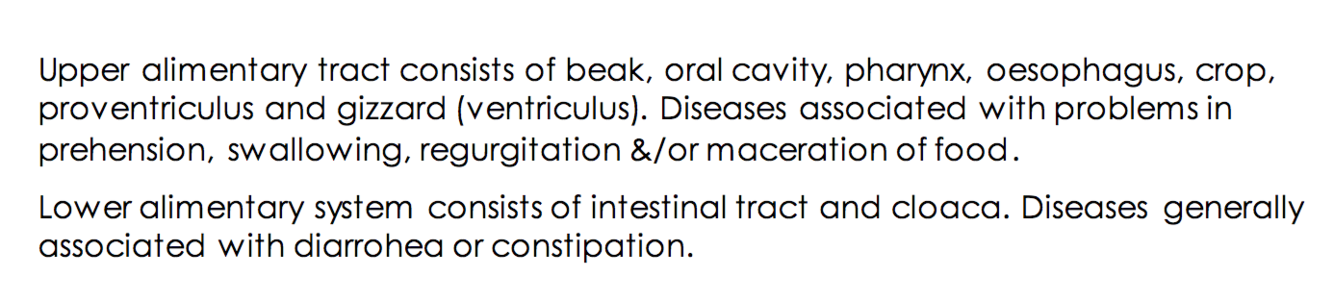Upper alimernatry tract of a bird consists of what? Lower?