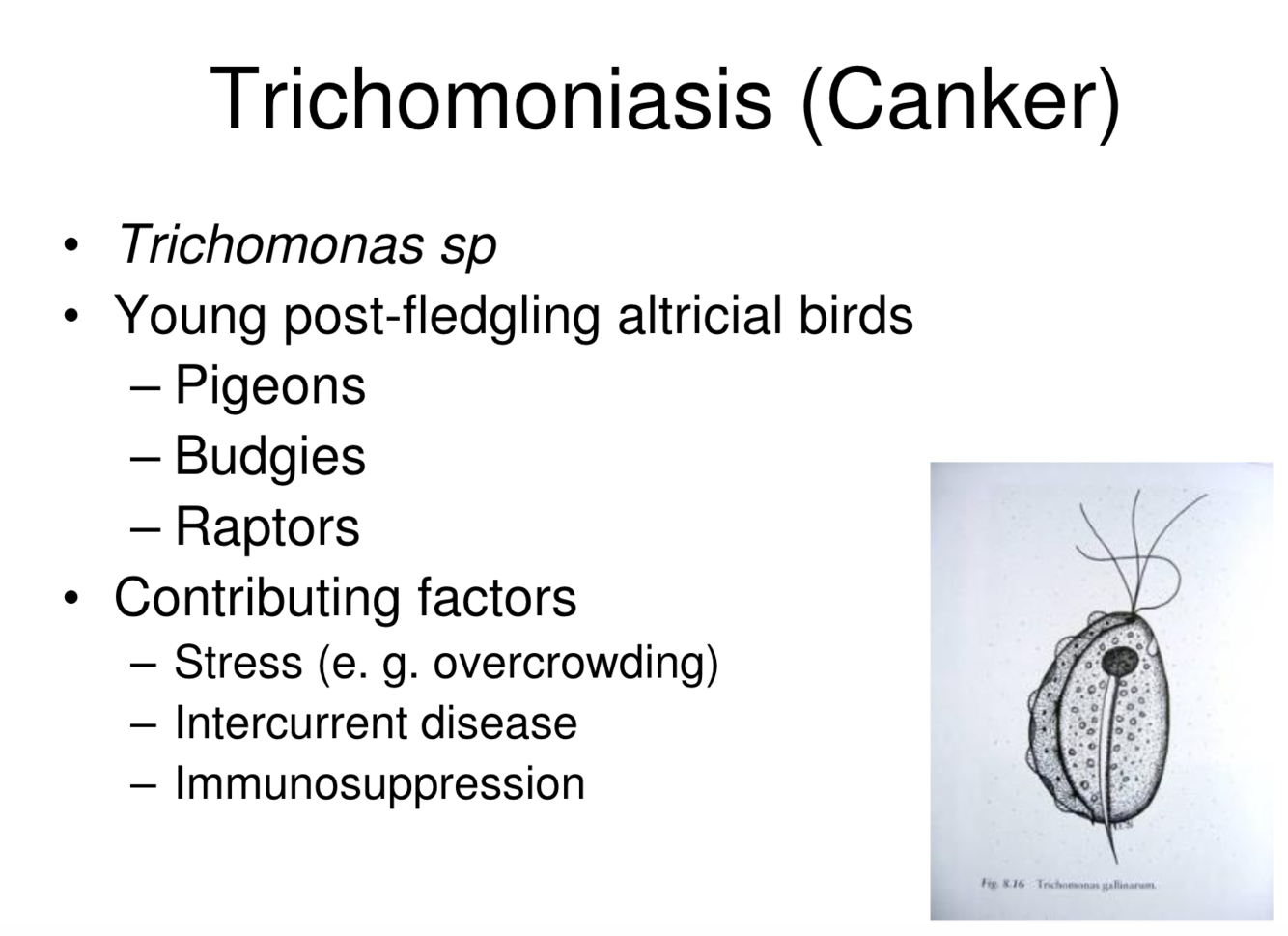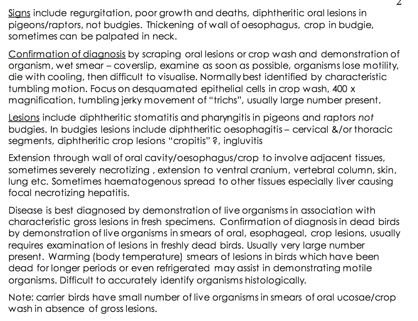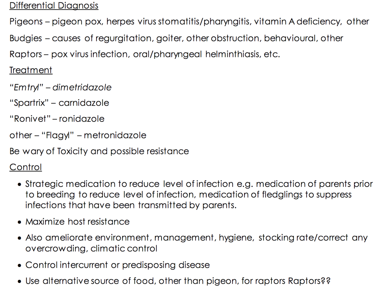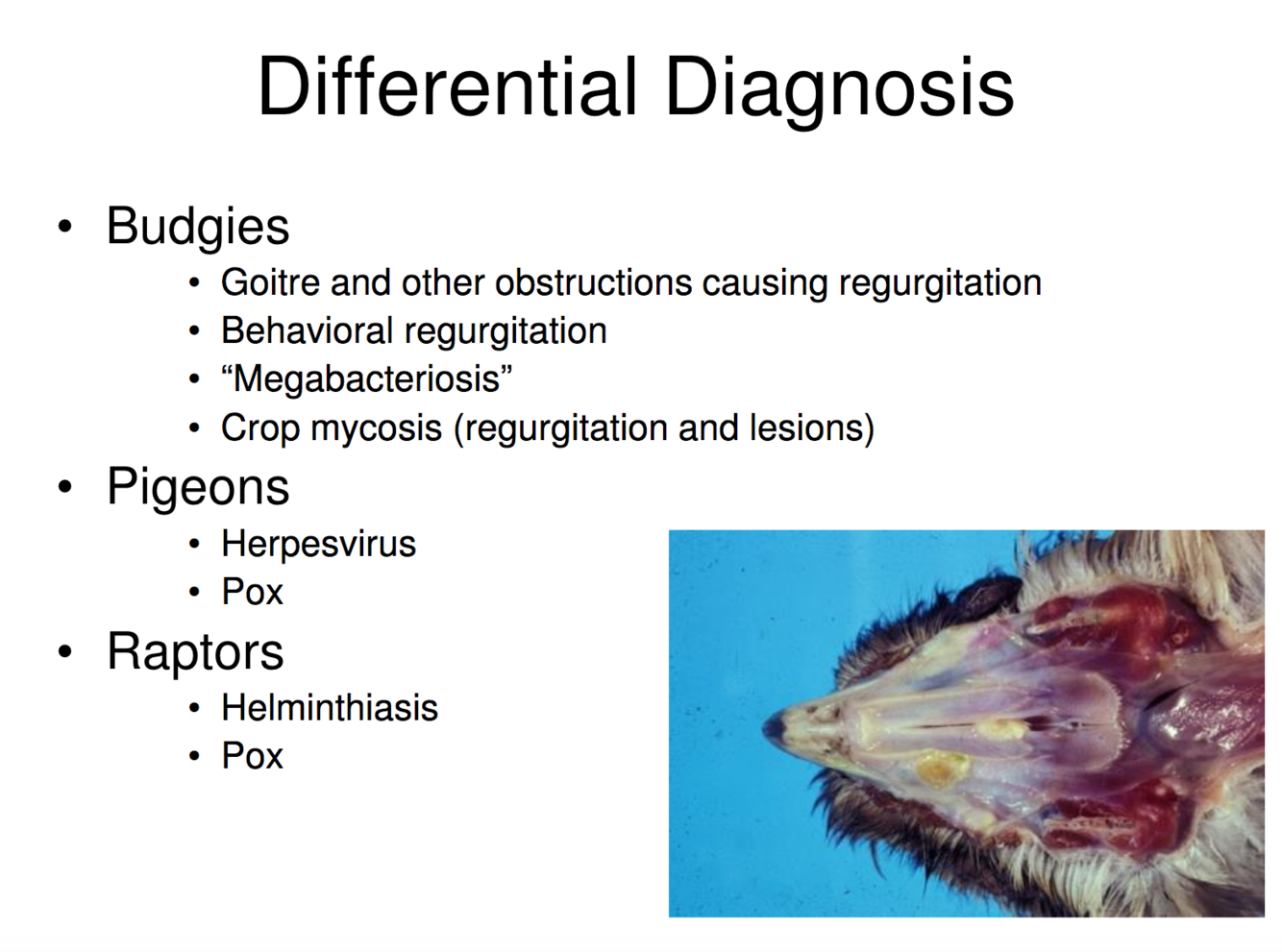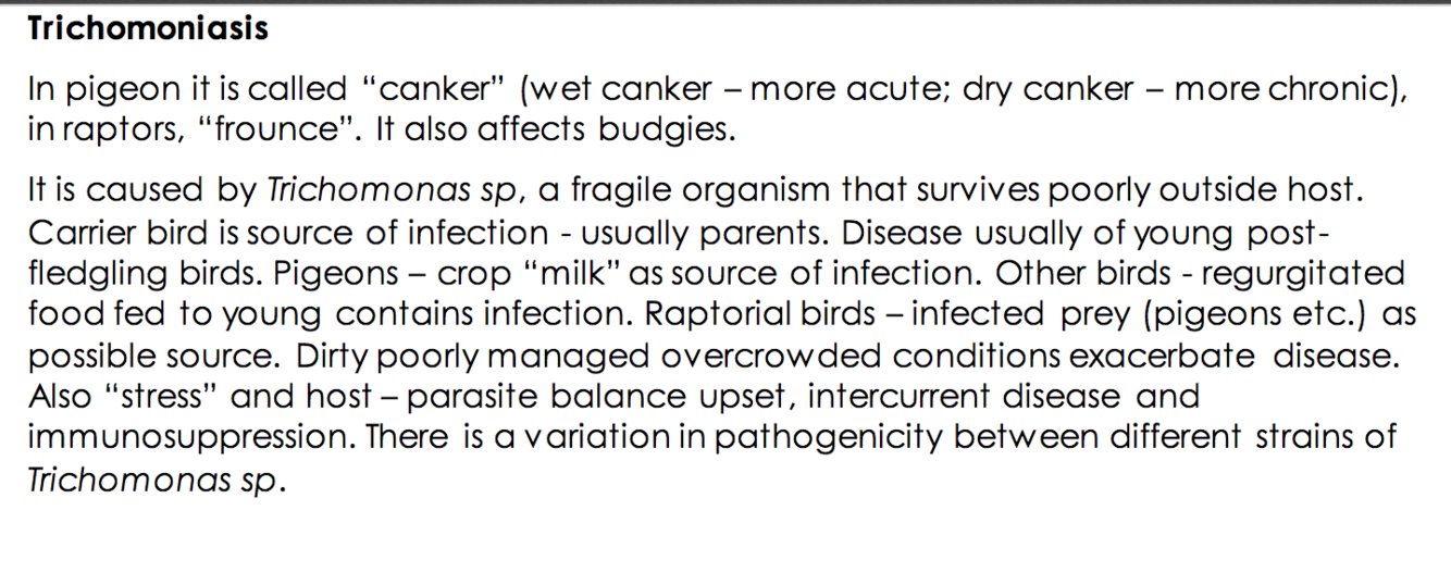 DDX Trichomoniasis in budgies, pigeons, and raptors
