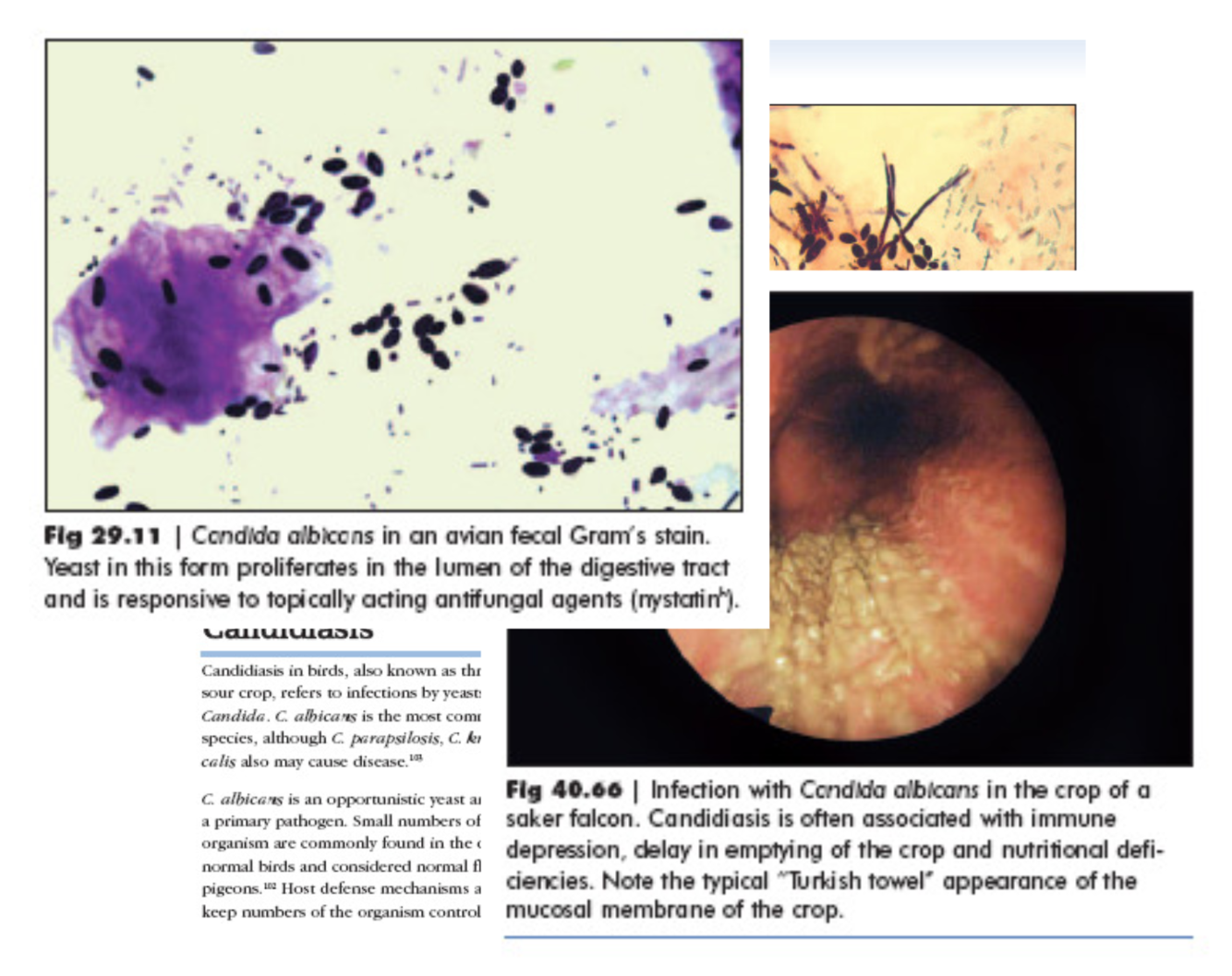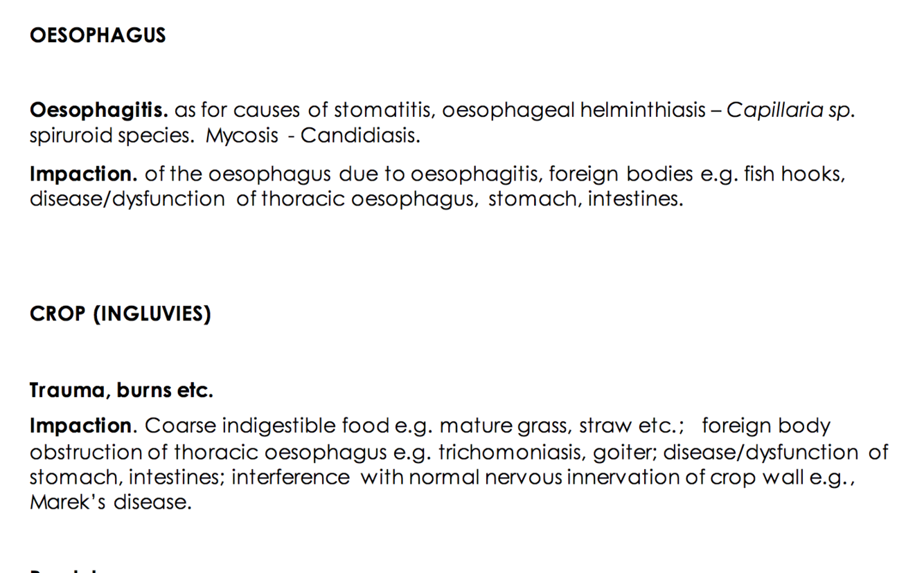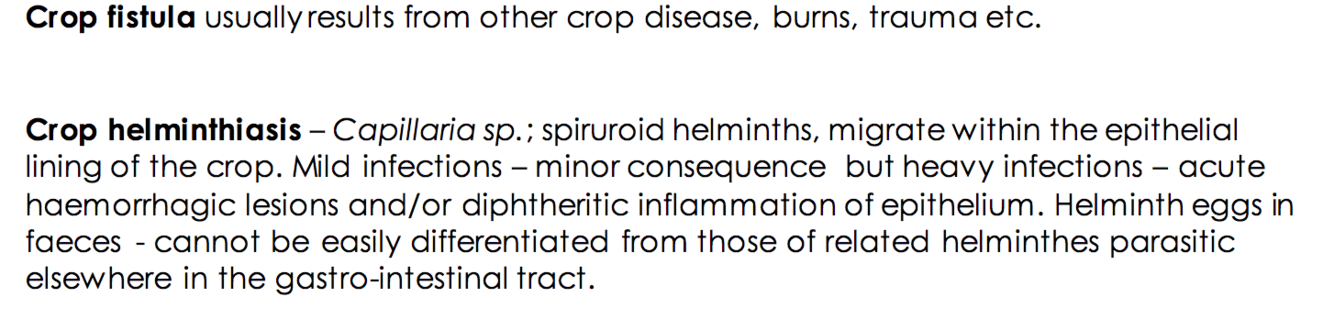 crop mycosis (Candidiasis), crop fistula, crop helminthiasis