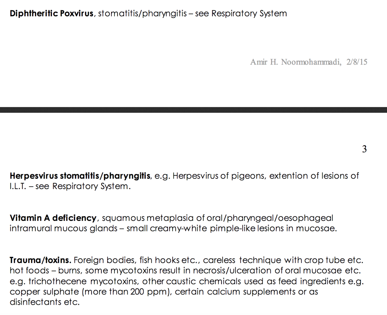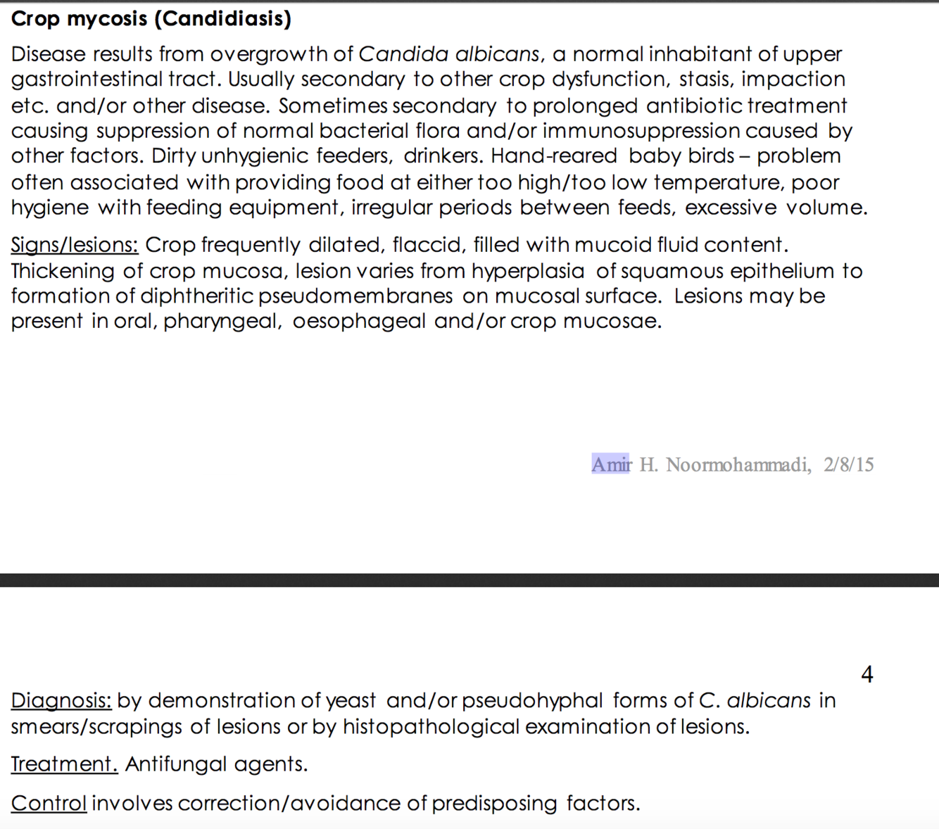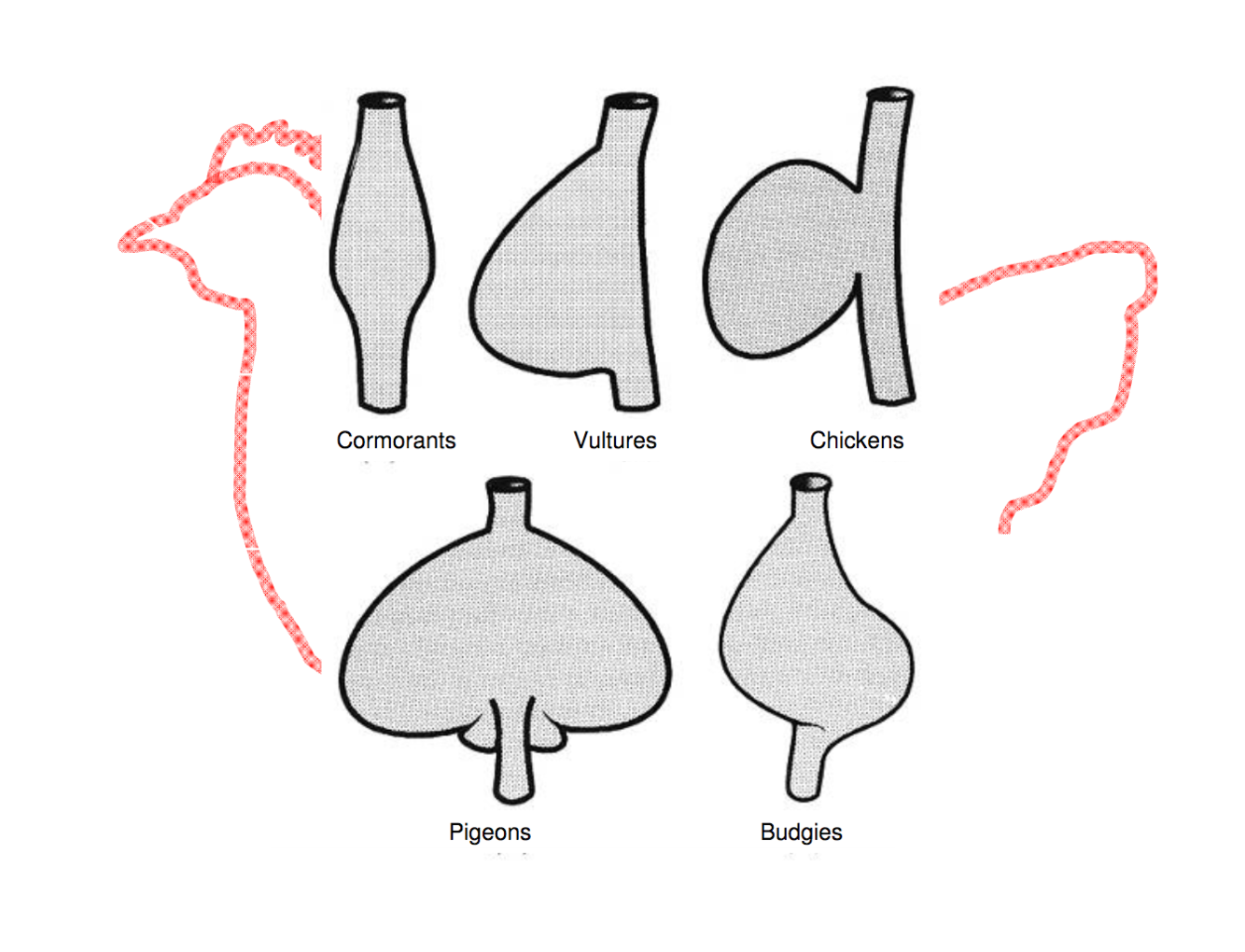 crop mycosis (Candidiasis), crop fistula, crop helminthiasis