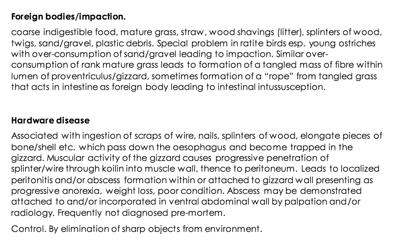 FB and hardware disease in birds (proventriculus, interventriculus, gizzard (ventriculus))