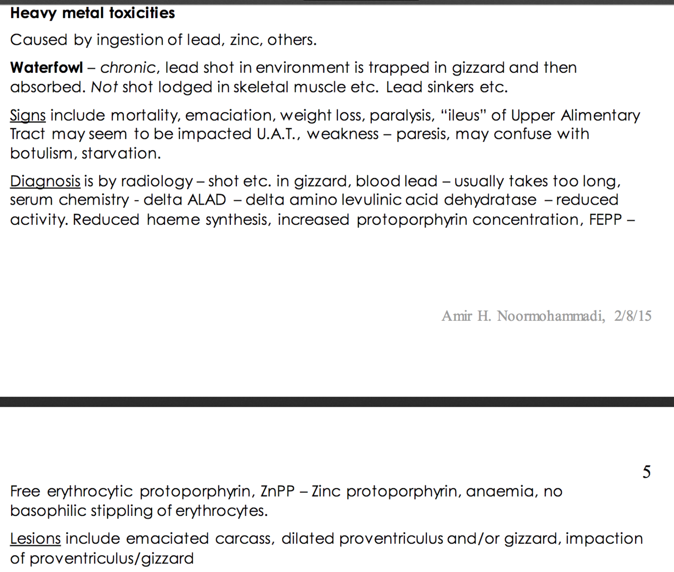 Heavy metal toxicity in waterfowl