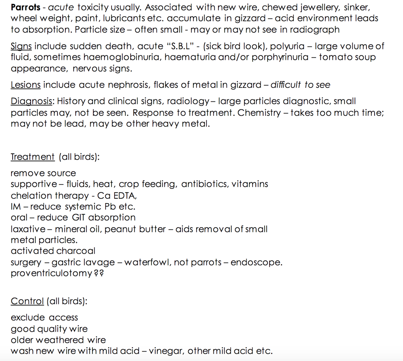 Heavy metal toxicity in parrots