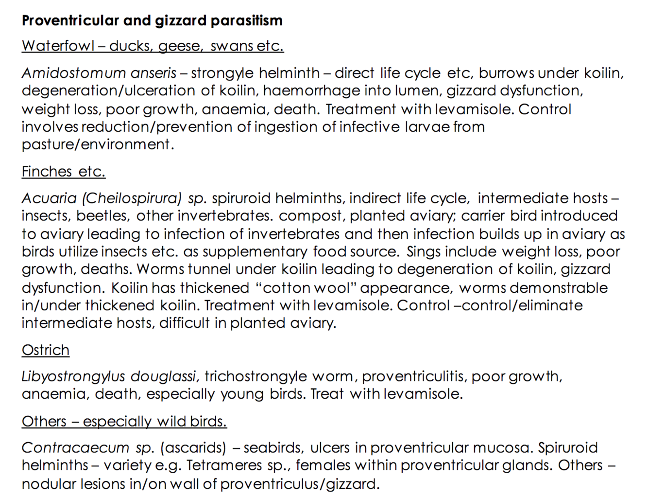 Proventricular and gizzard parasitism
