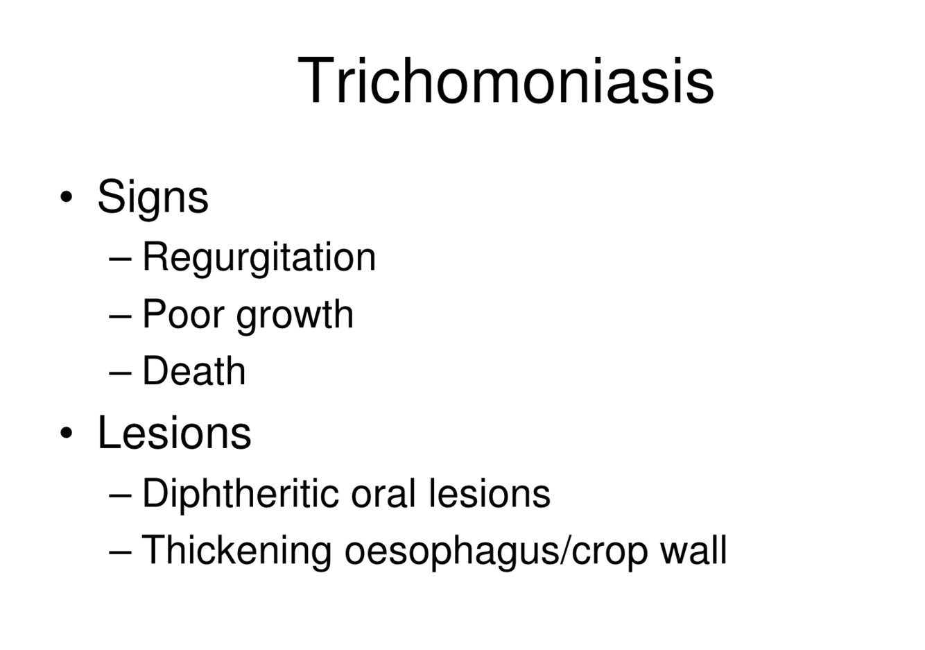 Trichomoniasis signs, diagnosis and lesions
