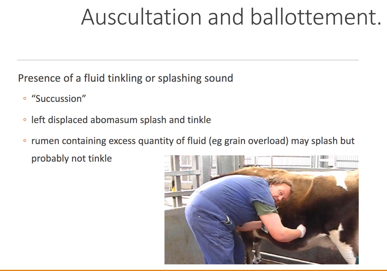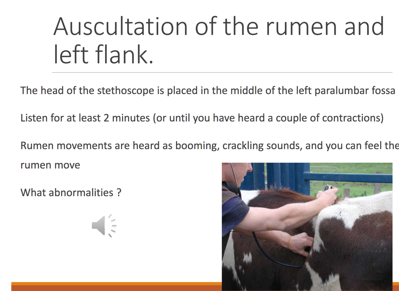 Auscultation of the rumen and left flank