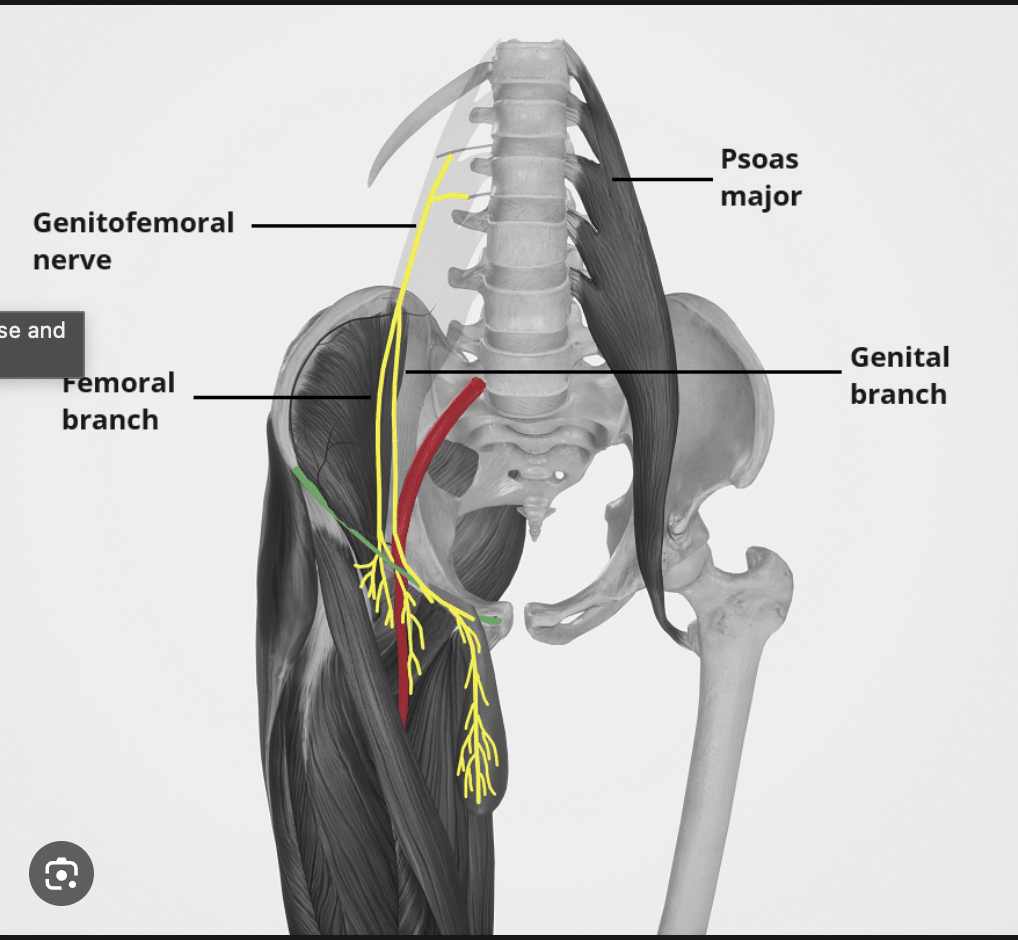 Which nerve is identified by its position on the anterior surface of the psoas major muscle?