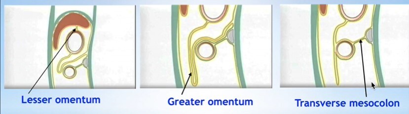 Where are the greater and lesser omentum located