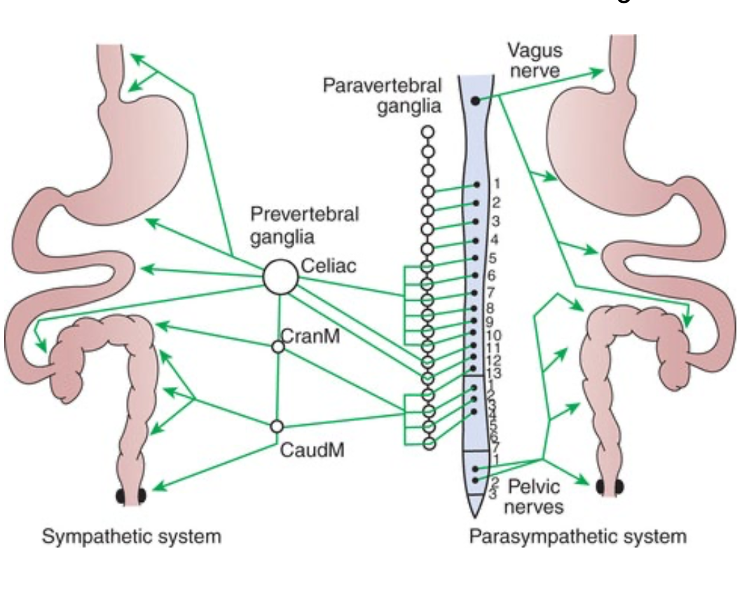 -> Influence on the gut is mediated through indirect effects on the * enteric nervous sytem (ENS) * and