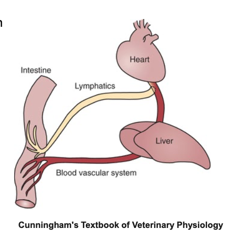 - ? drainage from the gut ? the liver, entering the bloodstream through the thoracic duct