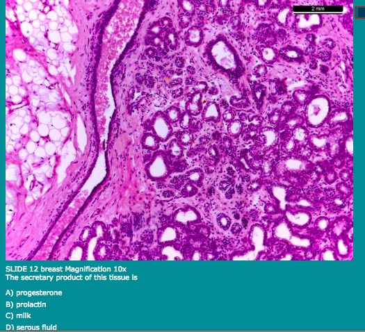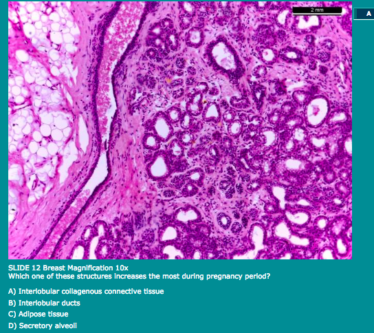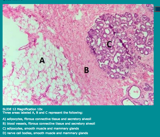 A) adipocytes, fibrous connective tissue and secretory alveoli