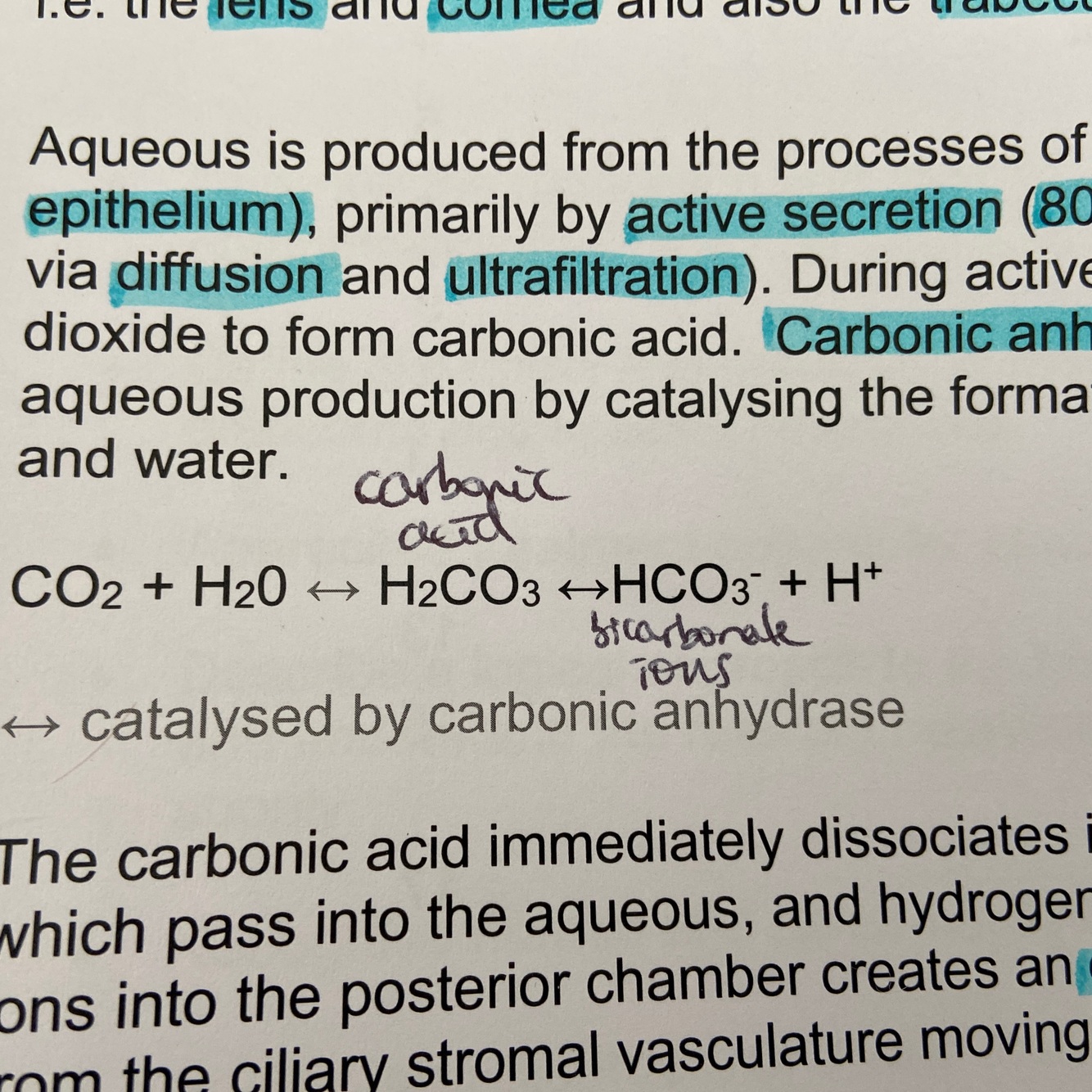 Movement of bicarbonate ions into the posterior chamber creates osmotic gradient, drawing in water from ciliary stromal vasculature