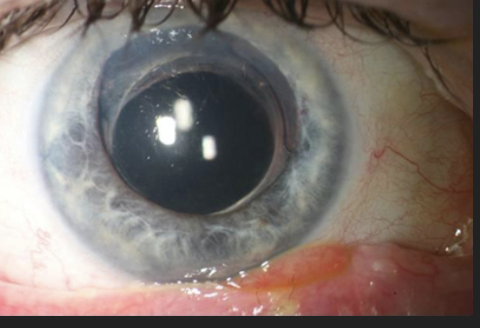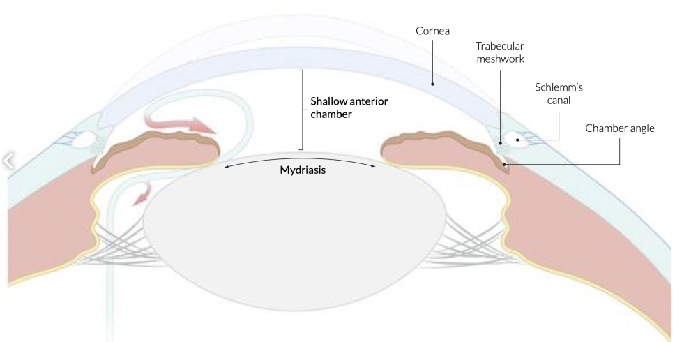 Glaucoma with raised intra-ocular pressure due to reduced drainage in anterior chamber