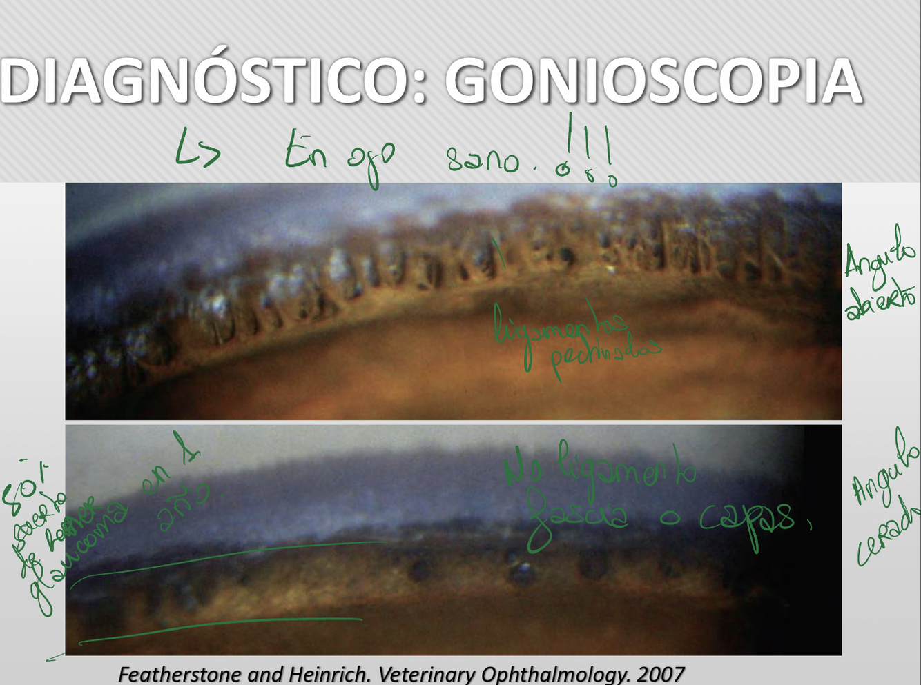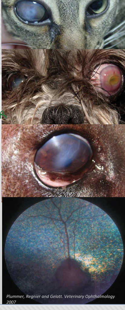 * Goniodisgenesia : desarrollo anormal del angulo iridocorneal (estrecho o cerrado)