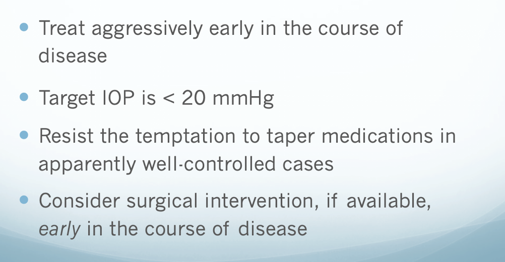 This is not a curable disease -> you are pretty much treating the animal until they go blind. The only “real” way to treat glaucoma is via enucleation sx.