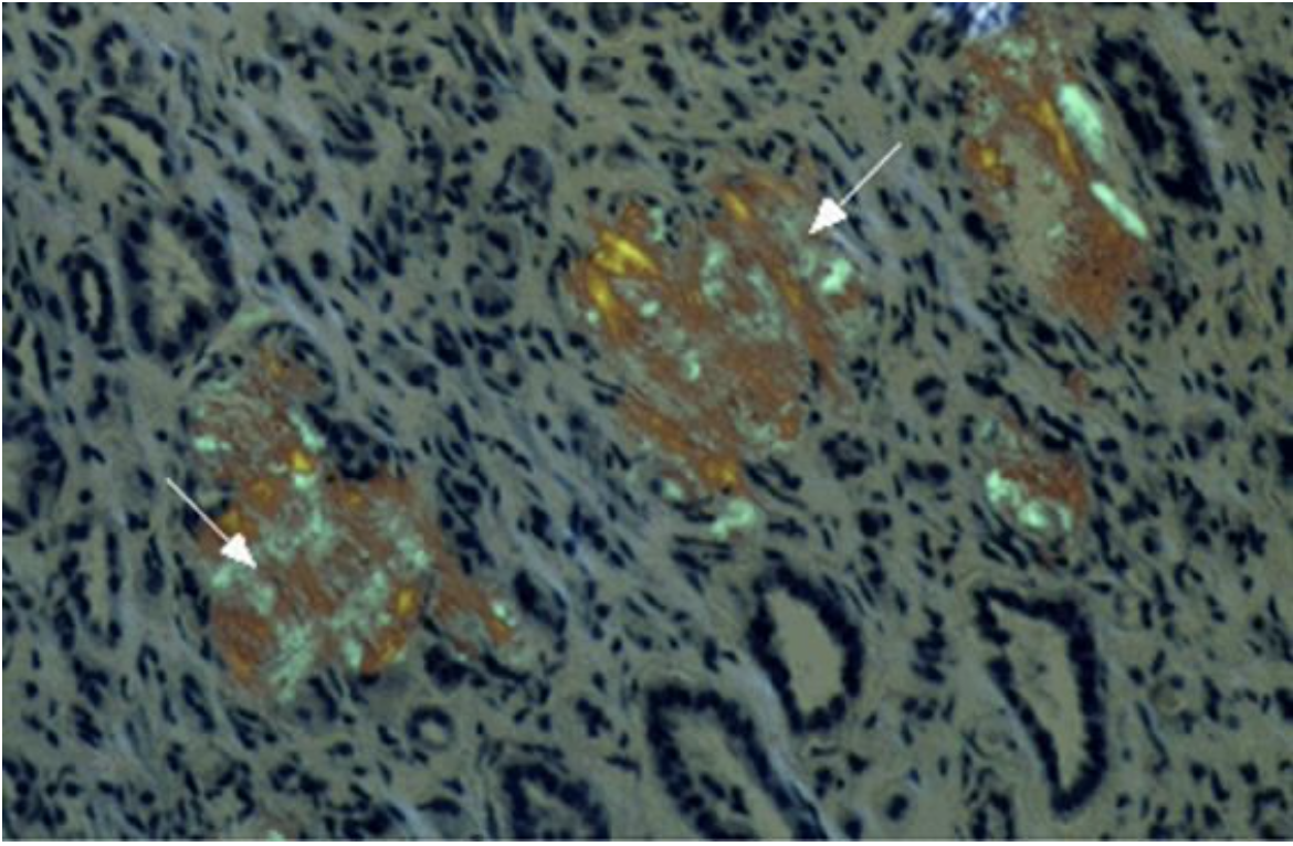 Congo red stains and polarized microscopy - Apple green birefringence positivity