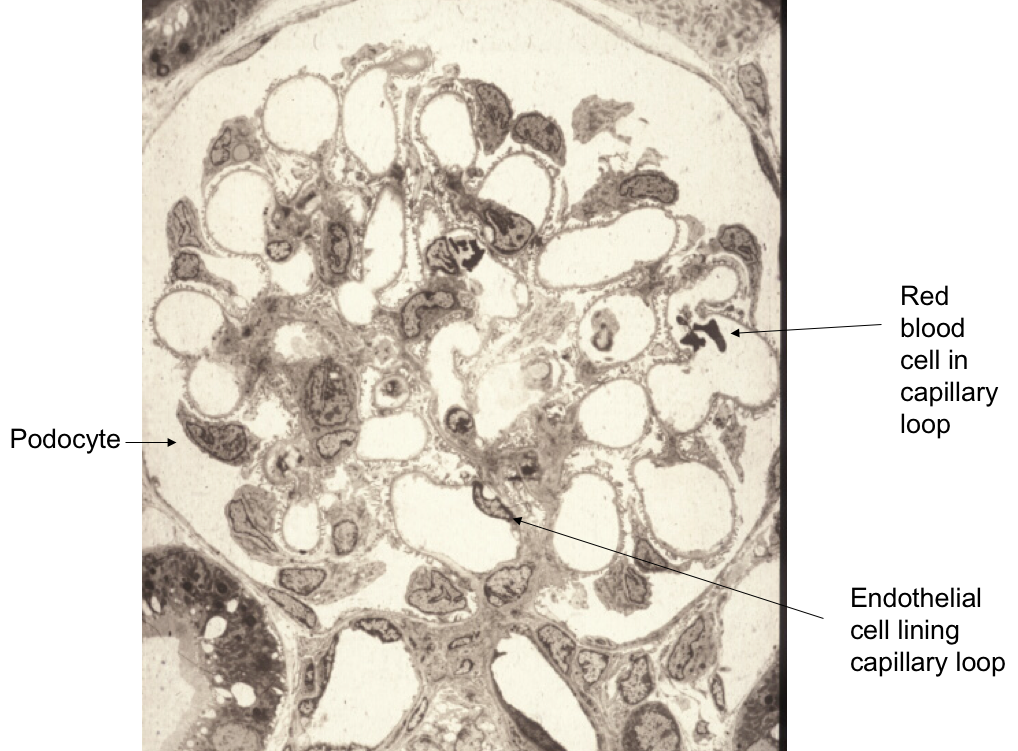 Podocytes are cells in the Bowman’s capsule in the kidneys that wrap around capillaries of the glomerulus