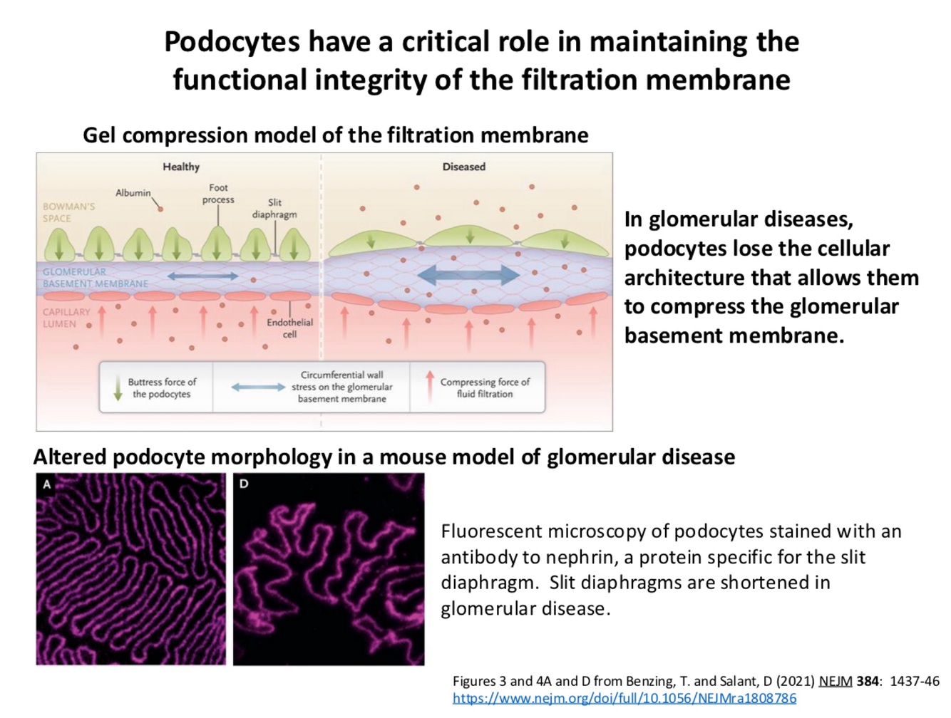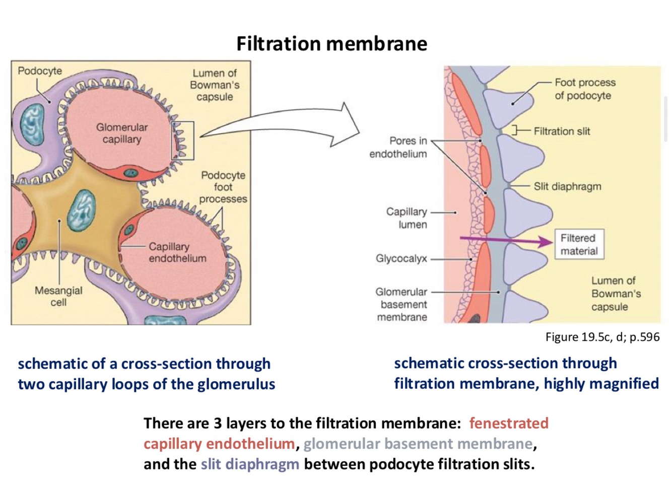 Think of basement membrane as having been connected to 2 differ epithelium. 1st the capillary endothelium, and 2nd the podocytes (consider them as making an epithelial layer).